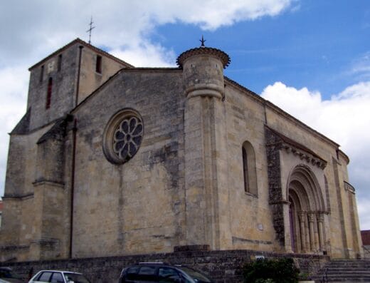Cette église romane a été remaniée en 1867. A l’intérieur, un tableau de l’école italienne, daté de 1610, représente Saint Thomas. Un autel baroque de 1853, oeuvre d’un artiste bordelais, y est également abrité. Au portail sud, un magnifique ensemble sculpté d’origine saintongeaise date de la fin du XIIème siècle. La porte centrale comprend cinq voussures représentant un zodiaque et les travaux des mois, ainsi que le combat des vices et des vertus, des scènes de chasse et de tir à la corde.