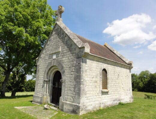 L’église fortifiée Saint-Médard à Houry, dans le département de l’Aisne, est une remarquable construction en pierre blanche. Sa façade, principalement composée de briques, est agrémentée d’une imposante tour. Cette dernière se distingue par un soubassement en pierre calcaire et une partie supérieure en brique, lui conférant un aspect à la fois robuste et élégant.