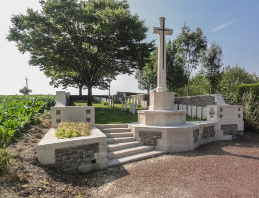 La présence de soldats allemands dans ce lieu s’explique par l’utilisation alternée du terrain par les troupes allemandes et celles de l’Empire britannique, ainsi que par la proximité d’un hôpital allemand dans le village. Les soldats inhumés dans ce cimetière ont été enterrés entre 1917 et 1918.