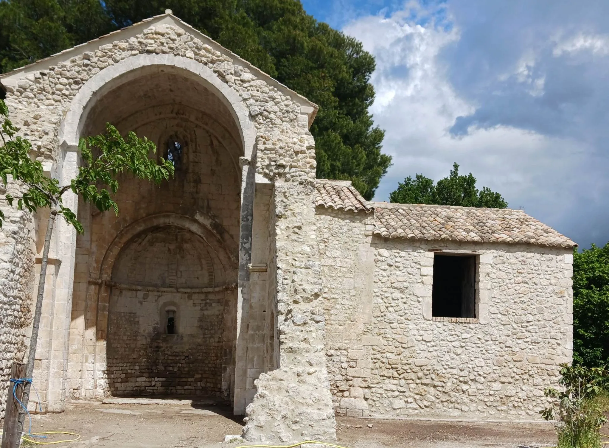 La Chapelle Saint-Véran à Orgon, dans les Bouches-du-Rhône, est un édifice remarquable datant probablement du XIe ou XIIe siècle. Dédiée à Saint Véran, évêque de Cavaillon, cette construction romane présente des vestiges antérieurs remontant à l’Antiquité tardive ou au Haut Moyen-Âge. Partiellement détruite, la chapelle ne conserve aujourd’hui que son abside, la première travée et des vestiges de la travée précédente. Sa nef unique était autrefois voûtée en berceau brisé, reposant sur des arcs doubleaux en plein cintre, tandis que l’abside semi-circulaire est voûtée en cul-de-four, ornée de rubans moulurés et d’une corniche décorée de dents de loup.