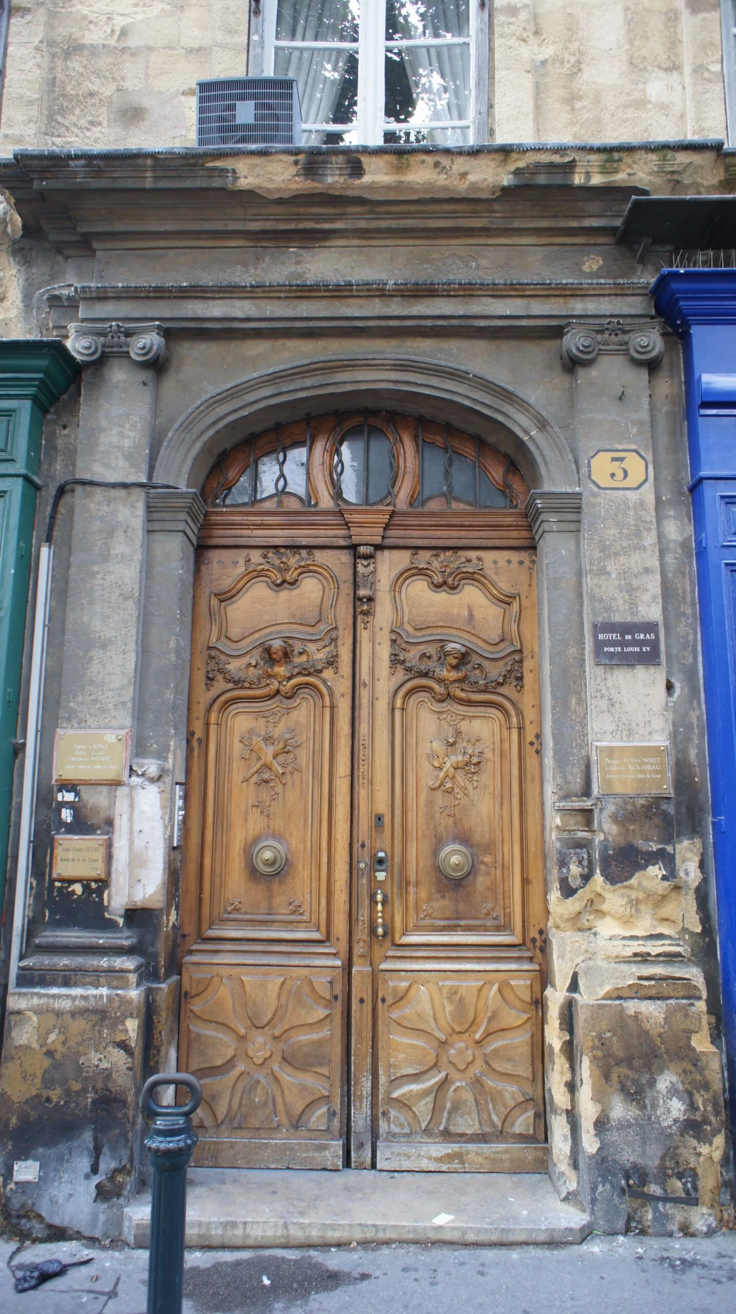 L’Hôtel de Gras, situé à Aix-en-Provence, est un remarquable hôtel particulier doté d’une porte en noyer inspirée du style classique tripartite à assemblage. Ce bâtiment témoigne du goût des habitants pour le naturalisme, avec des détails subtils intégrés à sa façade relativement sobre. La menuiserie de l’Hôtel de Gras est particulièrement travaillée, soulignant l’attention portée aux éléments architecturaux de l’époque. Cette résidence historique reflète l’élégance et le raffinement caractéristiques de l’architecture aixoise, témoignant de l’art et du savoir-faire des artisans locaux. L’Hôtel de Gras constitue ainsi un témoignage précieux du patrimoine architectural de la région, offrant aux visiteurs un aperçu de la richesse historique et culturelle d’Aix-en-Provence.