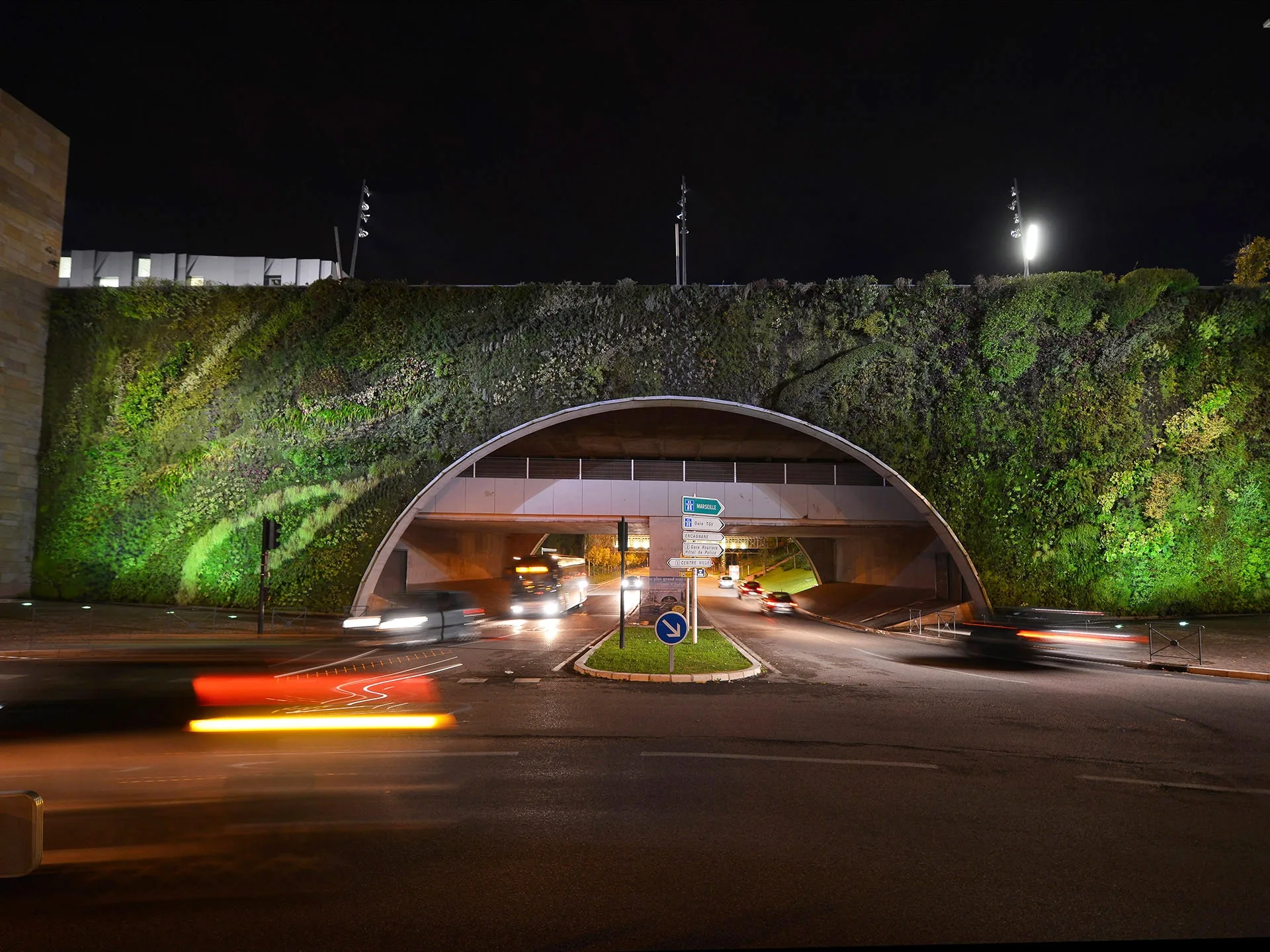 Situé dans le département des Bouches-du-Rhône, le mur végétal, conçu par le renommé botaniste Patrick Blanc, embellit la partie nord du pont Max Juvenal à Aix-en-Provence. Cette œuvre végétale unique en son genre offre un contraste saisissant avec l’environnement minéral qui l’entoure. Réalisé avec minutie, le mur végétal apporte une touche de verdure et de fraîcheur à ce quartier urbain. Véritable poumon vert, il contribue à améliorer la qualité de l’air et à créer un espace de biodiversité au cœur de la ville. L’initiative de Patrick Blanc témoigne de son expertise en matière de végétalisation urbaine et de sa volonté de promouvoir la nature en milieu citadin.
