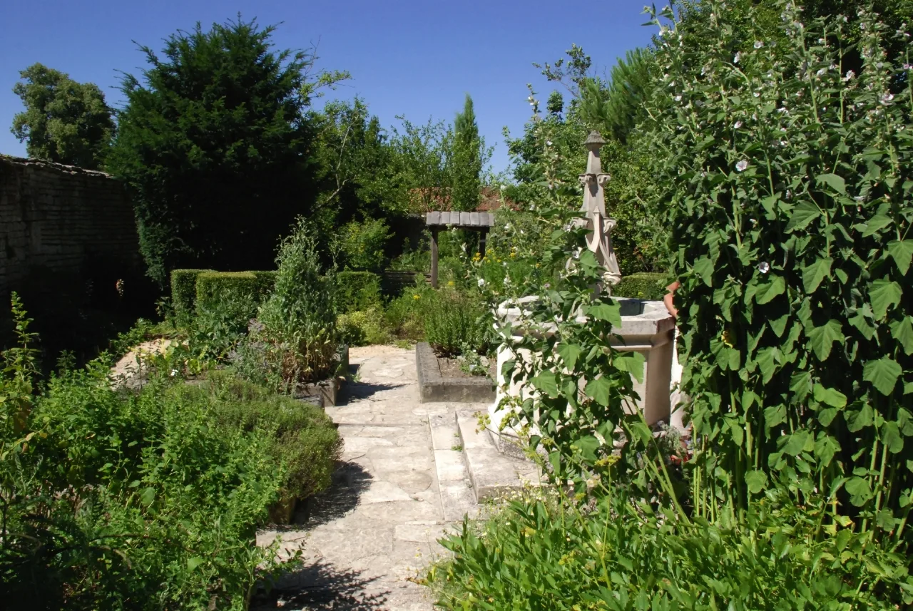 Le jardin médiéval de Tusson, situé en Charente, reflète l’aménagement typique d’un jardin monastique aux XIIIe et XIVe siècles. À cette époque, ces jardins étaient conçus comme une représentation symbolique du paradis perdu, chaque élément de leur agencement revêtant une signification particulière. Inspirés par les descriptions bibliques du jardin d’Éden, ces espaces étaient soigneusement structurés pour évoquer la perfection et l’harmonie du monde divin. Les plantes cultivées, les chemins tracés, les bassins d’eau et les sculptures étaient autant de symboles de la foi et de la contemplation. Ainsi, le jardin médiéval de Tusson offre un aperçu précieux de la spiritualité et de la philosophie qui animaient les communautés monastiques de cette époque en France.