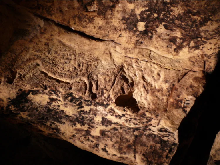 Parmi les motifs présents dans la grotte, on peut observer des animaux tels que des chevaux et des bisons, des signes géométriques, ainsi que trois représentations humaines, ce qui est rare dans l’art rupestre. L’une de ces figures, surnommée le Sorcier, se distingue par sa tête ronde, son ventre proéminent et ses mains tendues, avec une posture particulière incluant une érection sexuelle. Cette représentation unique donne son nom à la grotte et suscite l’intérêt des visiteurs pour sa symbolique et son mystère.