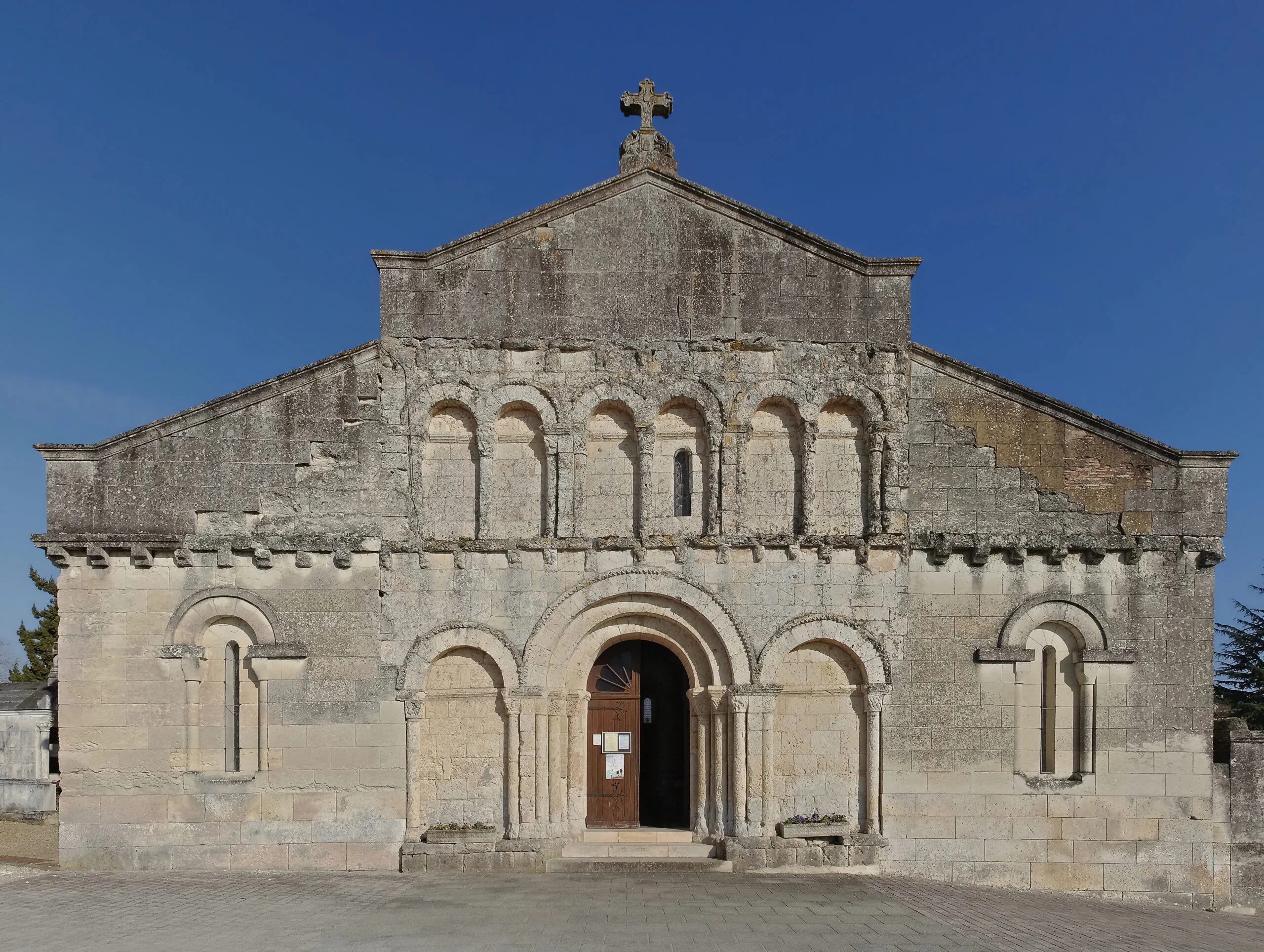 Le clocher, reconstruit à la fin du Moyen Âge, présente des caractéristiques défensives intéressantes. Son accès se fait par un escalier à vis étroit taillé dans le pilier, démontrant l’ingéniosité architecturale de l’époque. La façade de style saintongeais, l’avant-chœur, le clocher et le chevet, tous datant de l’époque romane, offrent un témoignage précieux du patrimoine architectural de la région.