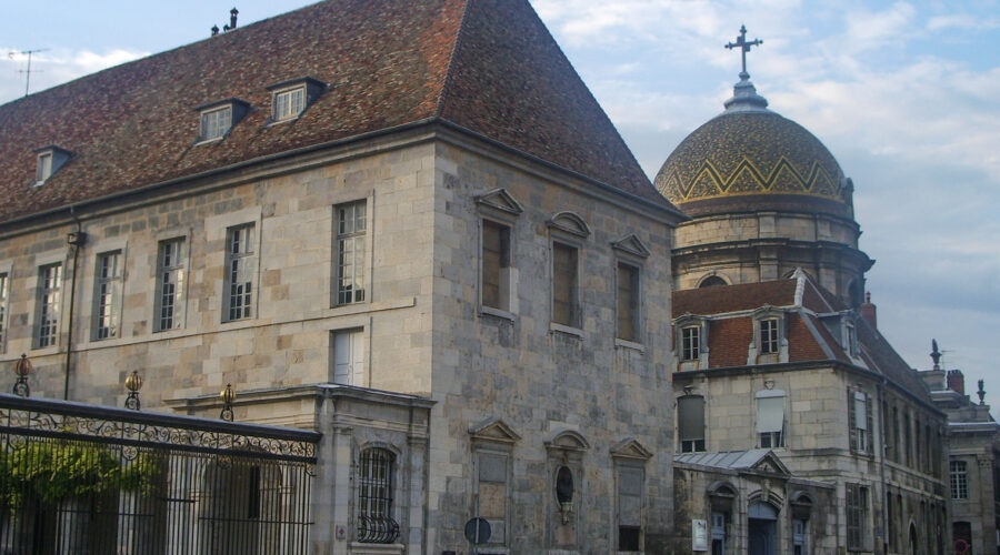 Construit en 1686 sur l’initiative de Monseigneur de Grammont, archevêque de Besançon, l’hôpital Saint-Jacques a été transformé en hôpital général par Louis XIV à travers une lettre patente. En plus de soigner les malades civils et militaires, une partie de l’édifice a été dédiée à la Maison de la Charité, chargée d’accueillir et de prendre en charge les indigents. L’architecture de l’hôpital se compose de trois corps de bâtiment sur arcades en calcaire bicolore, donnant sur un jardin clos par une grille en ferronnerie réalisée par le serrurier Nicolas Chapuis en 1703.