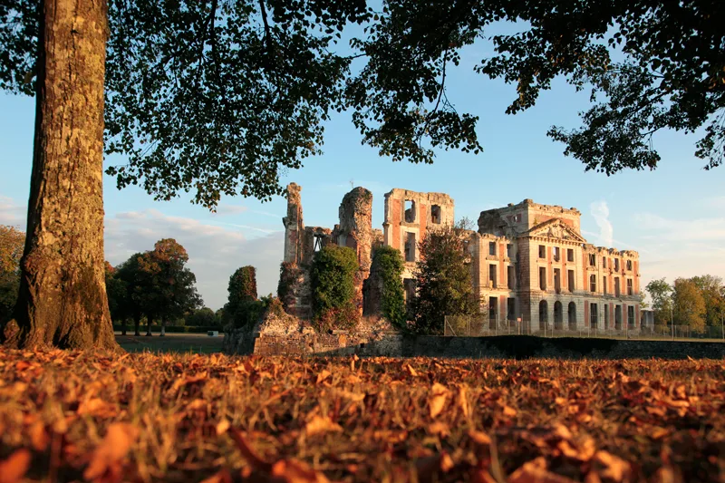 Les jardins et les canaux, les pièces d’eau et les perspectives soigneusement aménagés offrent un paysage d’une beauté saisissante, imprégné de grandeur et de décadence. Au cœur de ce décor, se dresse la ruine romantique du château néoclassique, imposant édifice de 160 mètres de longueur. Conçu par le Marquis de Laborde, personnalité influente à la cour de Louis XV, ce château fut le fruit du travail des plus grands artistes de l’époque.