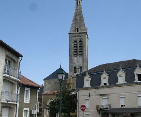 L’église paroissiale, sur la place actuelle, fut détruite après la révolution française. La porte nord subsiste toujours avec son aspect primitif. Elle est surmontée d’une tour carrée avec mâchicoulis et meurtrières d’angle. La place centrale et les arcades, qui abritent les commerces, viennent d’être rénovées. Le lavoir et la fontaine gothique laissent écouler l’eau du petit Auvignon, et vous invitent au calme et à la sérénité.