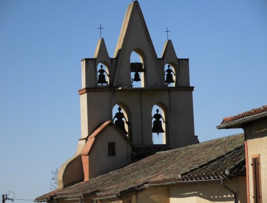 Un clocher carré s’élève presque à l’aplomb de la façade ouest.