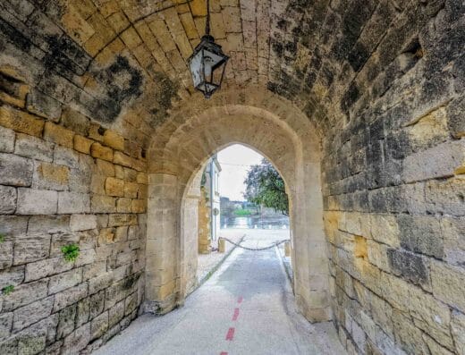 Il s’agit d’un édifice d’origine romane, dont il ne subsiste guère que le portail polylobé et la nef. L’église Saint-Pierre de Puisseguin a conservé sa façade occidentale romane datant de la fin du XIIème siècle, tout comme l’église Saint-Pierre de Petit-Palais. Sa polychromie a été conservée, ce qui en fait le seul exemple de la région. Ce portail est encadré de deux arcs aveugles et est précédé par un porche moderne. Le rôle social de l’édifice religieux dans cette paroisse s’éclaire grâce à la présence de ce porche ayant servi de lieu de réunion et de marché, et de la litre funéraire. De plan en croix latine, la nef se compose de deux travées voûtées respectivement en berceau brisé, puis en plein cintre. Deux chapelles voûtées en berceau rajoutées en 1786 forment les bras du transept. Le chevet gothique est à fond plat. Le clocher néoclassique se tient sur la façade occidentale.