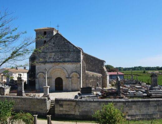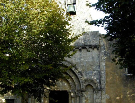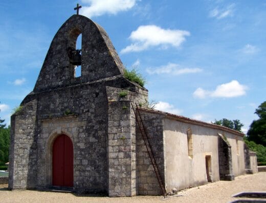 L’église actuelle, dont le porche porte la date de 1848, a remplacé une chapelle située sur les bords du Ciron (à l’emplacement du cimetière). La nef, de plan barlong, est couverte par une voûte en plâtre sur lambris. Le chevet voûté est légèrement plus étroit à l’intérieur et se termine par un mur droit. L’église est parvenue jusqu’à nous avec son autel de pierre formé par deux grosses colonnes doriques soutenant un fronton, ses peintures murales, aux fins motifs décoratifs, ses lustres et son chemin de croix. Elle évoque ainsi un décor de théâtre. Un porche vint plus tard s’appuyer contre sa façade occidentale.