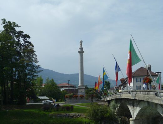 On doit à la sculptrice Béatrice BOUVET-SASSONE l’arche aux arcades blanches décorées des signes du zodiaque qui surplombe les fontaines.