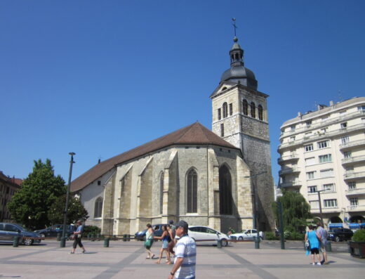 L’église actuelle fut construite de 1841 à 1845 avec des pierres de la carrière de Droisy et la molasse de Clermont en Genevois.