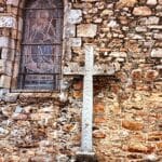 Accolée à l’église, la croix des morts repose sur un socle en serpentine où les cercueils étaient posés avant d’entrer dans l’église.