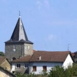 L’église, devenue paroissiale en 1265, était à l’origine la chapelle du château. Elle a été édifiée en trois phases : au XIIe, au XIIIe et au XVe siècle. Elle est de style roman et gothique. De chaque côté de la nef centrale se trouvent deux chapelles. Elles possèdent chacune une clé de voûte sur croisée d’ogives où se trouvent les armes des familles de Cognac et de Lur. L’église possède également un haut-relief polychrome de Saint-Roch et un bas relief tous deux classés au titre des Monuments Historiques. Le bas-relief est de même facture que celui de l’église d’Angoisse en Dordogne. En effet, la famille de Cognac, seigneur du lieu, et celle de Pompadour, seigneur d’Angoisse, se sont liées par le mariage d’Annet de Cognac et Hélaine de Pompadour. En 1628 ils habitaient le château de Cognac. Le bas-relief serait donc du XVIIème siècle.