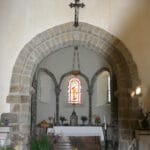 Église romane de Saint Roch. Il y a trois caractéristiques faisant entrer Meuzac dans la catégorie des plus anciennes paroisses : sa superficie, son vocable et sa cuve baptismale.