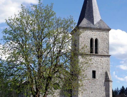 Église du XIIème siècle dédié à Arédius, fondateur de Saint-Yrieix-la-Perche, présente un plan très rare en Limousin, ayant conservé le chœur avec le clocher mur à deux jours, reconstruite en partie en 1496 et au XVIIIème siècle, elle est éclairée par des vitraux de Francis Chigot et de l’Atelier du Vitrail. Elle renferme un retable du XVIIIème siècle, un bénitier octogonal décoré de polylobes inversés, un Christ en croix de belle facture.