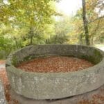 Vasque en granite taillée par un gaucher et sans doute destinée à former le bassin de quelque fontaine. 5 m de diamètre, 25 tonnes. Elle se trouvait à 2 km de Bessines (Lavaugrasse) et fut déplacée en 1963. Les anciens prétendaient que ce bassin devait toujours avoir de l’eau, si bien que l’été, lorsqu’il venait à s’assécher, on pouvait être assuré qu’il n’allait pas tarder à pleuvoir. Les jeunes filles à la recherche d’un époux s’y rendaient en pèlerinage pour en faire sept fois le tour, sur la margelle.