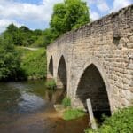 Il daterait du XIIIe et tiendrait son nom des religieux grandmontains (abbaye à une vingtaine de km). Sous l’Antiquité, il se situait sur l’un des itinéraires majeurs qui allait de Limoges à Argenton-sur-Creuse. Son tablier en dos d’âne repose sur 3 arches en berceau brisé et 2 piles. Il est bâti en assises horizontales de moellons de granit avec avant-becs au sommet en bâtière. Le soubassement des piles forme une étroite corniche au départ des arcs. Chaque rive est équipée d’une culée oblique pour diriger le courant des eaux en cas de crue. Le parapet est récent (1904) et l’arche centrale a été reconstruite après plastiquage en 1944.