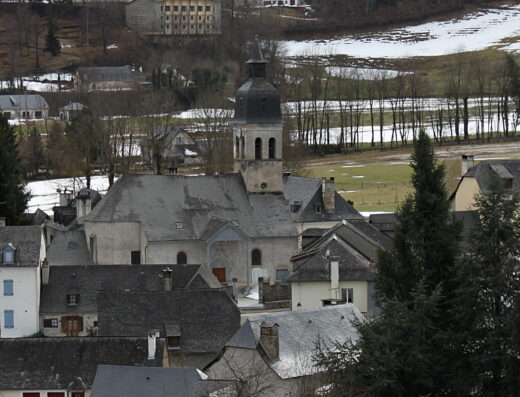 Dominant le centre du village à l’origine d’un domaine gallo-romain, elle est dédiée à tous les saints, comme l’église de Lézignan. Son clocher-mur reconstruit au XVIIIe siècle, abrite une cloche datée de 1664. Il est dit que c’est la cloche la plus ancienne du patrimoine national qui a échappé à la Révolution. L’excellence de son acoustique en fait un endroit idéal pour les prestations des Chanteurs montagnards de Lourdes.
