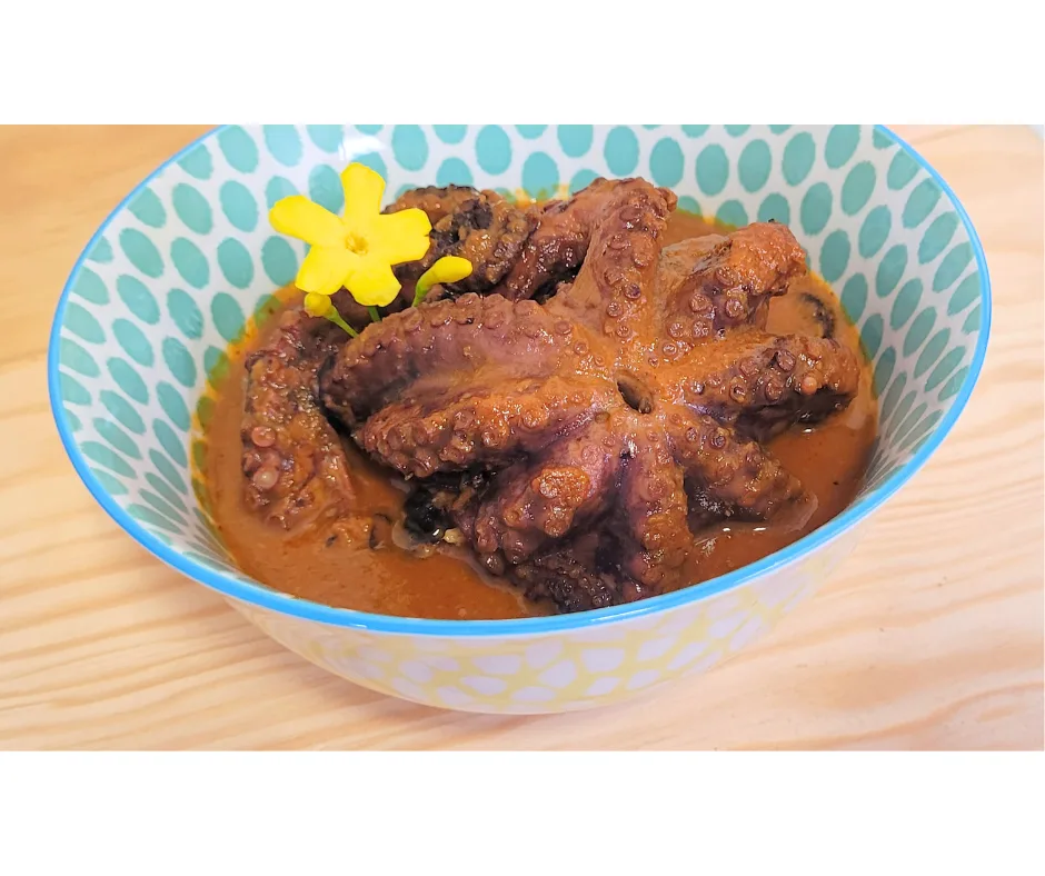Nous fabriquons une gamme complète de poulpes cuisinée. Ce poulpe, tout simplement, est cuisiné à la sétoise. Vous pourrez remarquer la qualité Azaïs-Polito. Vous avez la texture, vous avez la saveur, mais vous avez aussi la quantité. Vous pourrez remarquer que c’est un poulpe entier qui est cuisiné dans le pot, pour le plaisir des gourmands et des gourmets les plus avertis.Lorsque vous ouvrirez le bocal, vous pourrez retrouver le poulpe entier, ce qui est une fabrication unique en France. Vous pourrez constater la couleur de ce poulpe. Il s’agit en fait d’un poulpe de roche acheté directement sur la criée de Sète. Ce poulpe de roche est à double ventouse. C’est grâce à cela qu’on le distingue du poulpe blanc, beaucoup moins savoureux, mais très souvent utilisé dans les fabrications industrielles.Si vous êtes en présence d’un véritable poulpe de roche, vous remarquerez la fine membrane rosée sur les tentacules et sur le corps du poulpe. C’est là que se trouve toute la saveur et la raison de le faire cuire avec sa peau. C’est ce qui vous permettra de retrouver en bouche toute sa saveur.