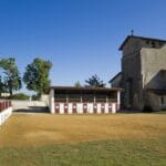 Les arènes de Caupenne sont constituées d’une tribune fixe, dominant une piste de sable. La façade de bois est peinte en rouge et blanc. Lors des courses, les gradins démontables sont installés, ainsi que des barrières appelées talanquères pour fermer la piste et former un couloir de protection. La présence de ces arènes témoigne de la vivacité actuelle de cette coutume. La course landaise consiste à attendre immobile la charge d’une vache sauvage qui pèse jusqu’à 250 kg. Les écarteurs esquivent au dernier moment, réalisant de la sorte un écart. Les sauteurs exécutent un saut au dessus de la vache ! La course landaise est une des quatre formes de tauromachie pratiquées dans le monde et se distingue par deux particularités : elle se pratique quasi exclusivement avec des vaches et des vachettes et non des taureaux et il n’y a pas de mise à mort de l’animal.