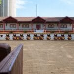 La façade et des tribunes peintes dans les tons rouge et jaune rappellent l’esthétique mauresque et toute l’influence de l’Espagne.