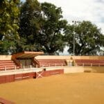 Ce sont de jolies arènes ovales de type espagnol en béton, avec gradins en amphithéâtre de 1020 places. Elles sont néanmoins destinées aux courses landaises. Elles ont été bâties en 1976 par l’architecte montois M. Depruneaux. Situées sur l’ancienne motte castrale dominant la vallée du Gabas.