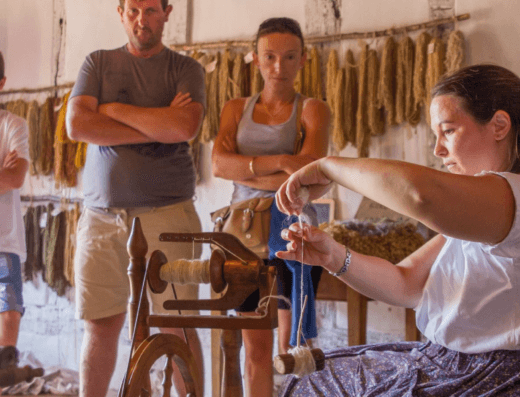 La façade reconstruite est assez originale : elle présente une porte haute à deux battants en bois, et décorée par une menuiserie fine.