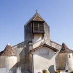 L’édifice possède un plan allongé à trois vaisseaux. La nef ouvre sur les bas-côtés par de grandes arcades en plein cintre. Le choeur semi-circulaire est percé de trois baies en plein cintre. A l’ouest s’élève un clocher-mur triangulaire percé d’une baie campanaire protégée par un édicule en bois. Il est précédé d’un porche carré ouvert par des arcades en plein cintre sur ses murs sud et nord. Le porche est encadré de deux tourelles établies au niveau des bas-côtés.