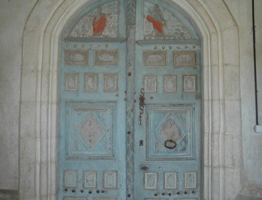 Au centre de ce charmant village chalossais, cette église datée du XIème s, fut transformée au XVIème et au XVIIème. Restaurée de 2001 à 2011, les travaux ont révélés de remarquables peintures murales  : une grande crucifixion datée de 1603 sur l’ancien portail sud, une autre scène sur le même mur de la nef et une scène de Jugement dernier datée de 1610 sur la surface voûtée.