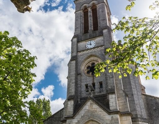 A la frontière des Landes et du Lot et Garonne, le village d’Arx est entouré de pins. L’église Saint Martin s’imbrique curieusement dans les habitations. Son origine remonte au 12e siècle et son aspect défensif témoigne des périodes troublées, de la guerre de Cent Ans aux guerres de religion. Les parties anciennes : vaisseau central, chevet plat, clocher à penne, chambre forte, porche fortifié avec son portail en arc brisé, tourelle hexagonale, sont d’époque gothique. Au 16e siècle, elle est restaurée et agrandie de deux vaisseaux et d’une tour qui abrite aujourd’hui l’horloge. A l’intérieur, les décors sculptés attirent l’attention : joueur de cornemuse, salamandre ailée, pommes de pin, oiseaux…