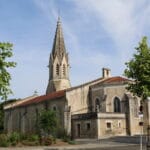 Cette église du 14 ème ou du 15 ème siècle est construite en pierre des Landes (Garluche ). Le portail haut de trois mètres et de forme cintrée est formé de deux colonnes à cannelures se terminant dans le haut par deux flèches. La troisième travée du bas-côté sud a été construite en 1902. Elle a été restaurée par la Municipalité et la Communauté paroissiale.