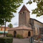 A Saint-Gein, petit village au sud de Villeneuve de Marsan bordant la route de Bordeaux à Pau, l’église paroissiale date du 14e siècle. Simple et robuste, elle s’ouvre par un large porche qui précède la tour carrée fortifiée surmontée d’un toit pyramidal
