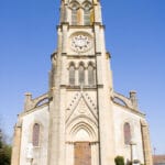 Construction de 1860 à 1864. Dédiée à saint Pierre, à l’instar de la première église aujourd’hui disparue et qui était située à deux kilomètres du bourg actuel, dans la direction de Tartas.