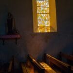 Au creux d’un vallon, l’église Saint-Pierre de Juliac est nichée à la croisée de chemins en contrebas du bourg de Lagrange. Fondée en 1092, elle est le seul vestige d’un prieuré de l’Ordre des Prémontrés. Un panneau sous le porche précise les époques de construction.