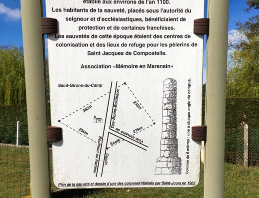 En suivant le parcours de visite de Montfort, Bastide du 13ème s, vous découvrirez au point n°4 une autre Chalosse, avec cette fontaine et son lavoir. Depuis la route, un chemin vous permet d’y descendre à travers une bambouseraie et des bananiers. Dans les années 1800, les familles et les domestiques y descendaient par un chemin de terre assez pentu pour se procurer la quantité d’eau suffisante aux besoins journaliers. Il leur fallait 1h entière ! Amusez-vous à compter les marches (150 exactement mais chut c’est un secret !). Arrivés en bas, vous pourrez profiter de l’aire de pique-nique. A votre gauche, se trouve un circuit de randonnée balisé (rando guide n°4 en vente à l’office de tourisme 2 €) et à votre droite, enfoncez-vous dans les bois puis suivez le chemin sur 600 m, il vous mènera à l’église du 12ème siècle (point 5 du circuit).