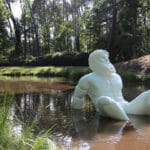 Dans le glissement d’Artémis, divinité grecque, à Diane divinité latine, et de Diane en Diane dans ses multiples formes, la figure de la déesse d’abord inapprochable a gagné en familiarité et en sensualité. Elle aime se laisser surprendre. Elle laisse approcher les hommes intrépides: les chasseurs et les artistes. Le décor est planté et c’est bien parce que «Le bain de Diane» y apparaît en son absence qu’il fallait ici rejouer la scène. Marine Julié s’intéresse plus à Apollon. Cela tombe bien puisque Diane et Apollon sont les mêmes. Elle nocturne, lui lumière…