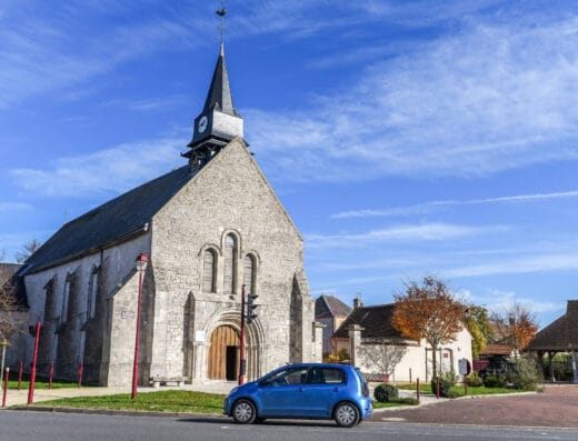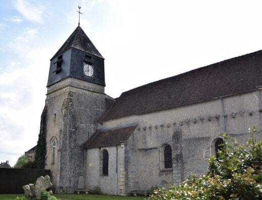 En plein centre de ce bourg qui domine l’Essonne à ce qui fut un carrefour des voies romaines de Sens à Chartres et d’Orléans à Reims, l’église constitue une masse imposante.