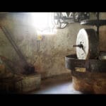 Le moulin comporte deux meules dont l’une est toujours en activité. La meule en pierre broie les cerneaux, une poêle chauffe modérément la pâte, ensuite revient la presse d’où est extraite l’huile.