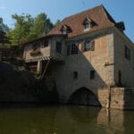 Situé au pied de Saint-Cirq Lapopie, le moulin d’Aulanac date du XIVème siècle. Il est composé à l’extérieur de pierres apparentes et de colombages, comme les maisons médiévales du village. On trouve à l’intérieur deux paires de meules (contre 4 dans à l’époque). Le moulin ne se visite pas et s’admire de l’extérieur.