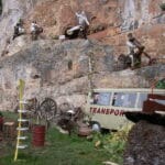 Mise en scène de personnages à l’intérieur et extérieur. Exposition d’objets inventés, satires des petits travers humains ou de société, exploitation du site rocheux comme support à de nouvelles réalisations : réserve indienne, parc zoologique, décharge sauvage protégée, fresques sur rochers, sculpture métallique…