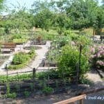 Le potager offre un éventail des plantes cultivées pour la préparation des repas de l’époque : essentiellement soupes pour les manants, légumes fins et plantes aromatiques ou condimentaires pour accommoder les viandes, réservées surtout aux bourgeois.