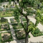 Ce jardin d’inspiration médiévale est aménagé au cœur du village. Il présente plusieurs carrés : le premier est alimentaire : le potager. On y trouve des plantes à cuire, à racines, à graines et des cucurbitacées. Le deuxième est le carré des simples avec des plantes médicinales. Le troisième est le jardin de Marie avec des fleurs à bouquets pour garnir les autels (lys, marguerites…). Le dernier carré est composé de plantes aromatiques, plantes tinctoriales et plantes textiles.