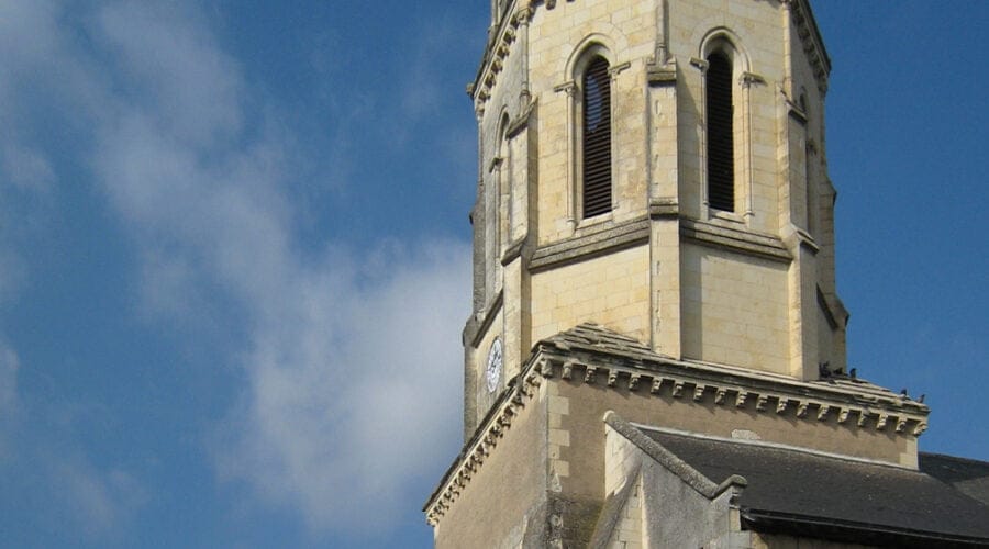 Puis à droite de la porte, la chapelle de Vierge déploie toute l’exubérance de l’architecture angevine du début du XIIIème siècle, avec un bel exemple de voûte à nervures multiples. Le chœur du XIIIème siècle, seule partie voûtée de l’édifice à l’époque, réunit l’essentiel du décor architectural roman avec ses cinq baies à triple archivolte torique. Le clocher de forme octogonale, longtemps en charpente, fut remplacé en 1861 par un autre en pierre par l’architecte angevin Heulin.