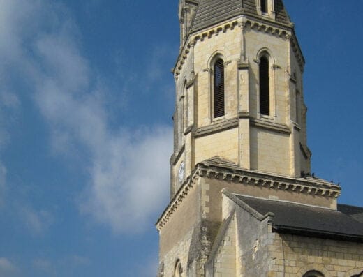 La construction de la nouvelle église confiée à l’architecte Frédéric Le Sénéchal débute en 1954 et s’achève en 1956, en présence de Monseigneur Chapoullie, évêque d’Angers, Jean Morin, préfet, Émile Boumier, maire.