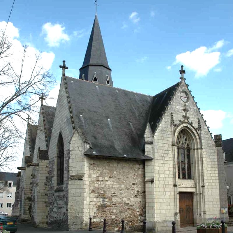 De cet édifice roman primitif, l’un des premiers exemples angevins d’église rurale à nef unique, seuls le mur sud et deux baies romanes subsistent. Ses dimensions recoupaient celles de la nef actuelle. Plus tard, l’accroissement de la population conduit les paroissiens à entreprendre l’extension du monument à la fin du XVe siècle et au début du XVIe siècle. On ajoute alors un chœur aux voûtes gothiques, surélevé de deux marches, afin d’échapper aux inondations, et de signifier son caractère sacré, le chœur étant la partie la plus sainte de l’édifice, le lieu du sacrifice de la messe, sur l’autel. On ajoute également le bas-côté nord, formant une seconde nef, plus étroite, et se signalant à l’extérieur par un triple pignon.