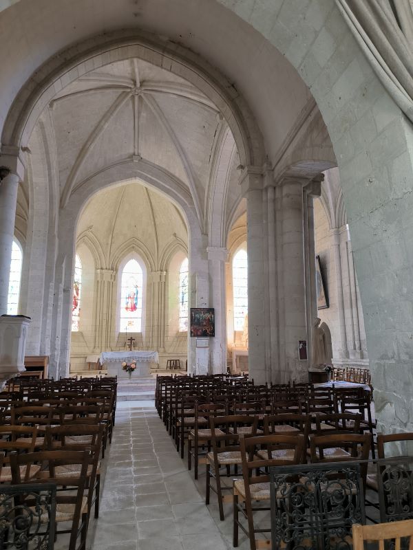 Outre les verrières, vous pouvez admirer les stalles en bois de la fin du XVe siècle, disposées dans le chœur, et qui proviennent de l’Abbaye de Fontevraud. Notez par ailleurs la présence, tout au long de la nef, de stations d’un chemin de croix remarquable dont l’origine est inconnue. Les visages sont fins, les personnages très expressifs, les couleurs recherchées et harmonieuses. Cela en fait une belle source de méditation de la Passion du Christ qui retrace les dernières heures de Jésus avant sa crucifixion. Près de l’entrée, une cuve monolithique de pierre dure et de facture médiévale constitue des fonts baptismaux.