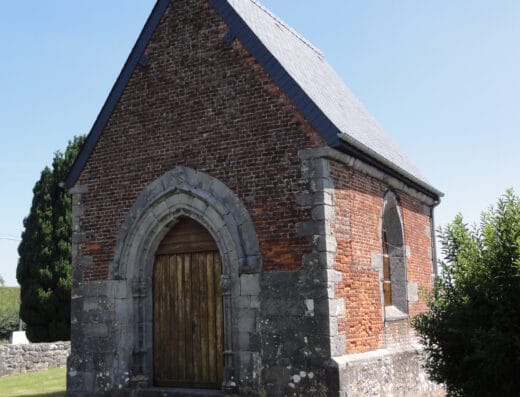 Cette petite grotte est le seul élément construit au sein d’un frontage engravillonné. Un muret surmonté d’une grille le délimite.