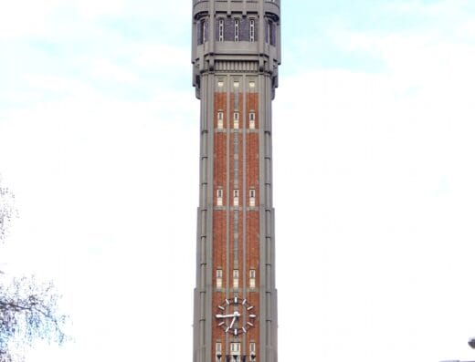 Chapelle de plan carré datant de 1671 en brique et pierre bleue avec une toiture pyramidale.